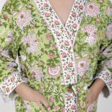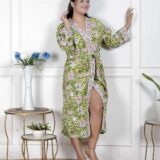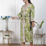 comfort with this elegant cotton bathrobe, crafted from soft and breathable fabric for a relaxed feel. Designed with a stylish print, adjustable waist belt, and convenient length, it ensures ease and comfort for lounging or post-shower wear. Lightweight yet absorbent, this bathrobe combines functionality with modern design, making it a perfect home essential.