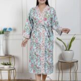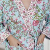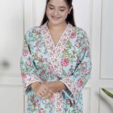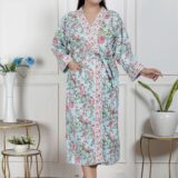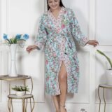 comfort with this elegant cotton bathrobe, crafted from soft and breathable fabric for a relaxed feel. Designed with a stylish print, adjustable waist belt, and convenient length, it ensures ease and comfort for lounging or post-shower wear. Lightweight yet absorbent, this bathrobe combines functionality with modern design, making it a perfect home essential.