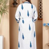 comfort with this elegant cotton bathrobe, crafted from soft and breathable fabric for a relaxed feel. Designed with a stylish print, adjustable waist belt, and convenient length, it ensures ease and comfort for lounging or post-shower wear. Lightweight yet absorbent, this bathrobe combines functionality with modern design, making it a perfect home essential.