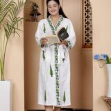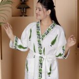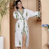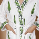 comfort with this elegant cotton bathrobe, crafted from soft and breathable fabric for a relaxed feel. Designed with a stylish print, adjustable waist belt, and convenient length, it ensures ease and comfort for lounging or post-shower wear. Lightweight yet absorbent, this bathrobe combines functionality with modern design, making it a perfect home essential.