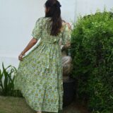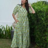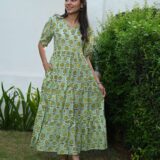 ffortless elegance with this Light Green cotton anarkali maxi dress featuring a vibrant floral print, puff sleeves, and a flattering fit-and-flare design. Perfect for casual outings, brunches, and vacation styling.