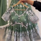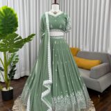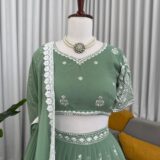 Elevate your festive wardrobe with this stunning Pastel Sage Green Lehenga Set, crafted to perfection with intricate detailing and an elegant modern silhouette. The soothing sage green shade paired with delicate white embroidery creates a fresh, graceful, and timeless look—perfect for daytime celebrations, pre-wedding events, and festive occasions.