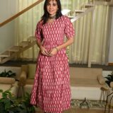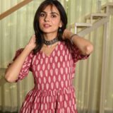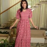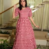 ffortless elegance with this Red cotton anarkali maxi dress featuring a vibrant floral print, puff sleeves, and a flattering fit-and-flare design. Perfect for casual outings, brunches, and vacation styling.