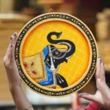 This unique pichwai elephant painting is a one-of-a-kind piece of art that is sure to add a touch of personality to your home. The elephant is painted in a whimsical style, and the colors are bright and cheerful. This painting is sure to bring a smile to your face every time you see it.