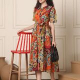Women’s Cotton A-line Maxi Dress, featuring a beautiful all-over floral print. Designed with short sleeves and a flattering flared silhouette, this gown-style dress is both breathable and stylish. Crafted from soft cotton, it’s the perfect choice for summer days, casual outings, vacations, or brunch dates.