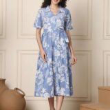 Women’s Cotton A-line Maxi Dress, featuring a beautiful all-over floral print. Designed with short sleeves and a flattering flared silhouette, this gown-style dress is both breathable and stylish. Crafted from soft cotton, it’s the perfect choice for summer days, casual outings, vacations, or brunch dates.