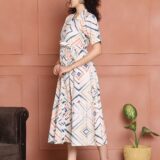 Women’s Cotton A-line Maxi Dress, featuring a beautiful all-over floral print. Designed with short sleeves and a flattering flared silhouette, this gown-style dress is both breathable and stylish. Crafted from soft cotton, it’s the perfect choice for summer days, casual outings, vacations, or brunch dates.